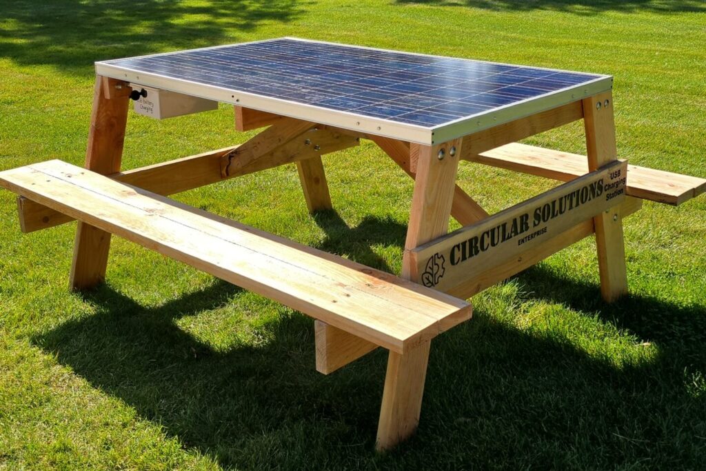 The Solar Table Project utilized retired panels donated by a Michigan Tech research lab, giving new life to materials that would have otherwise been discarded. The Circular Solutions team designed and built a solar-powered table using reclaimed materials to provide a functional outdoor workspace that supports sustainable, circular design.